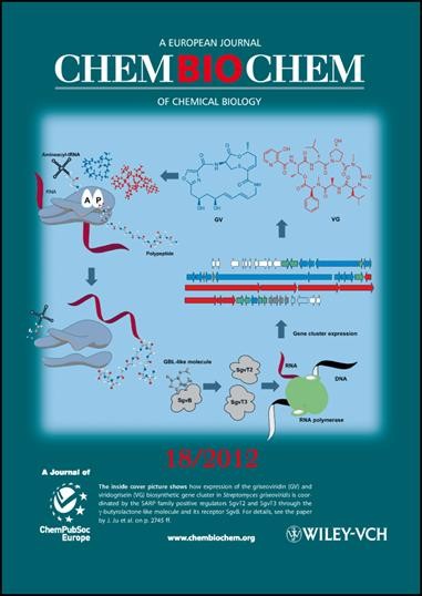 研究人员运用RT-PCR技术对野生型和突变株进行分析,发现它与受体的结合能够激活下游的两个SARP家族的正调控蛋白sgvT2和sgvT3,从而揭示了灰绿霉素和绿灰霉素高效协同抗菌性的生物合成机制。该成果被选为内封面文章发表在ChemBioChem上。