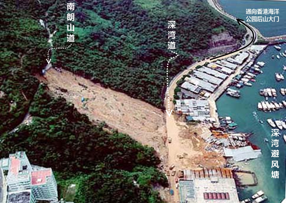 图3. 1995年8月13日发生于通向香港海洋公园后山大门的深湾道滑坡灾难事件