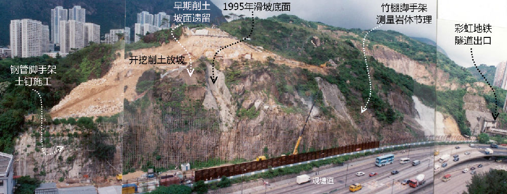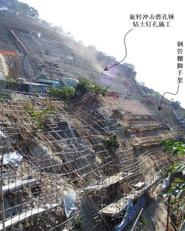图 7. 2000年石硖尾一幅高陡旧削土斜坡的土钉加固维修工程
