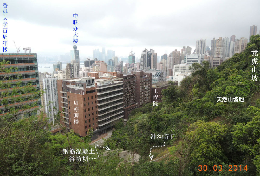 图6. 香港大学校园内天然山坡冲沟谷口处的钢筋混凝土谷坊坝