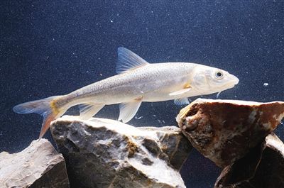 中图 7月1日在澜沧江源区拍摄的裸腹叶须鱼。新华社发(雷波摄/IBE供图)
